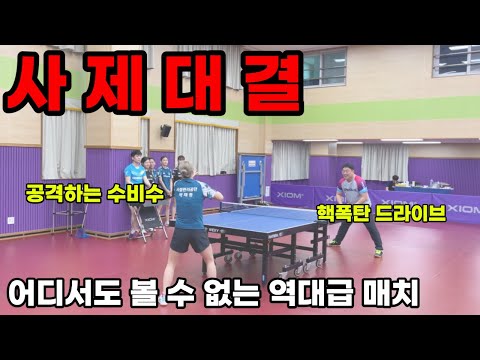 일체형 라켓을 든 현역 선수 VS 특주 라켓을 든 아마추어 [탁구경기]